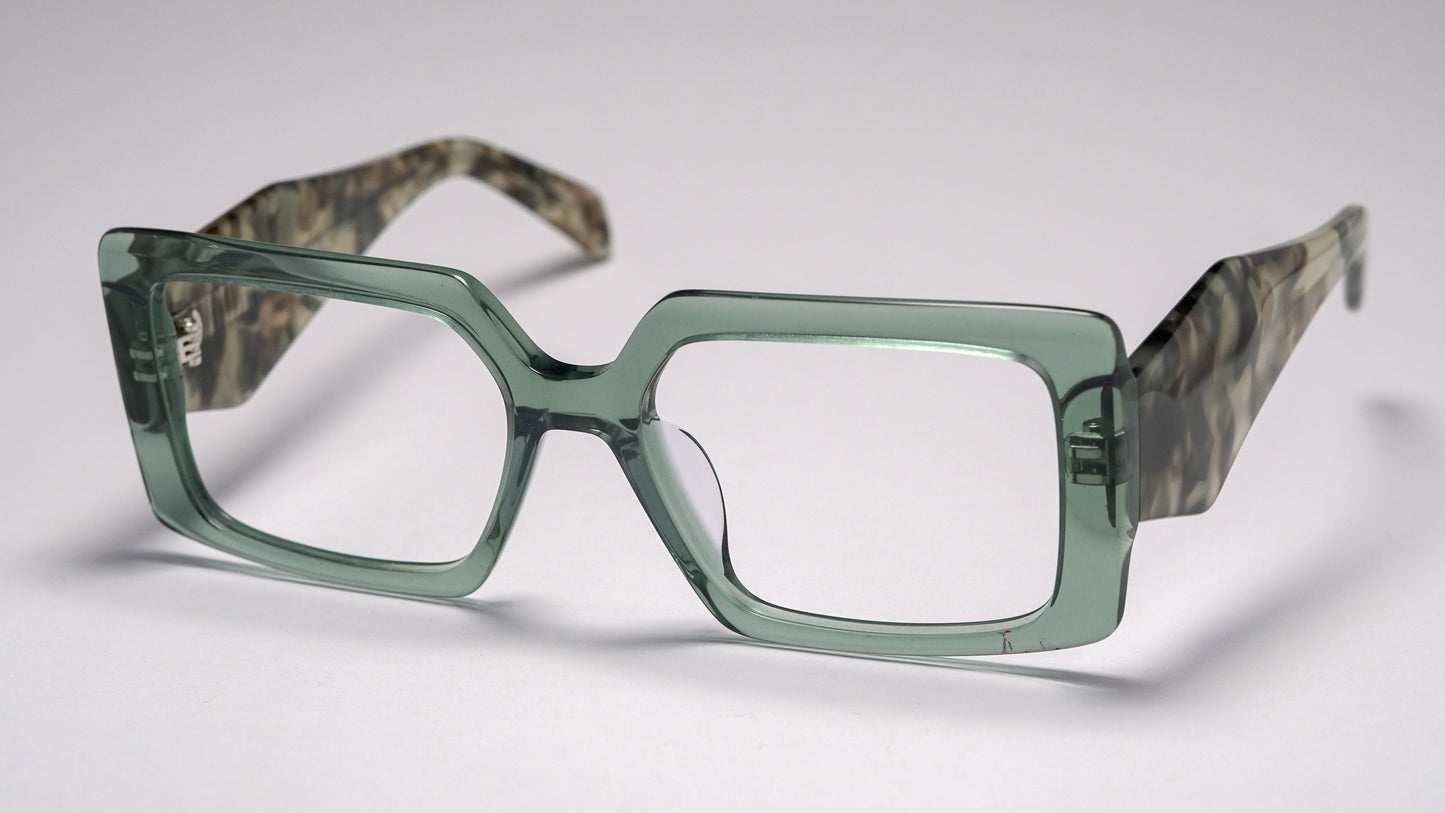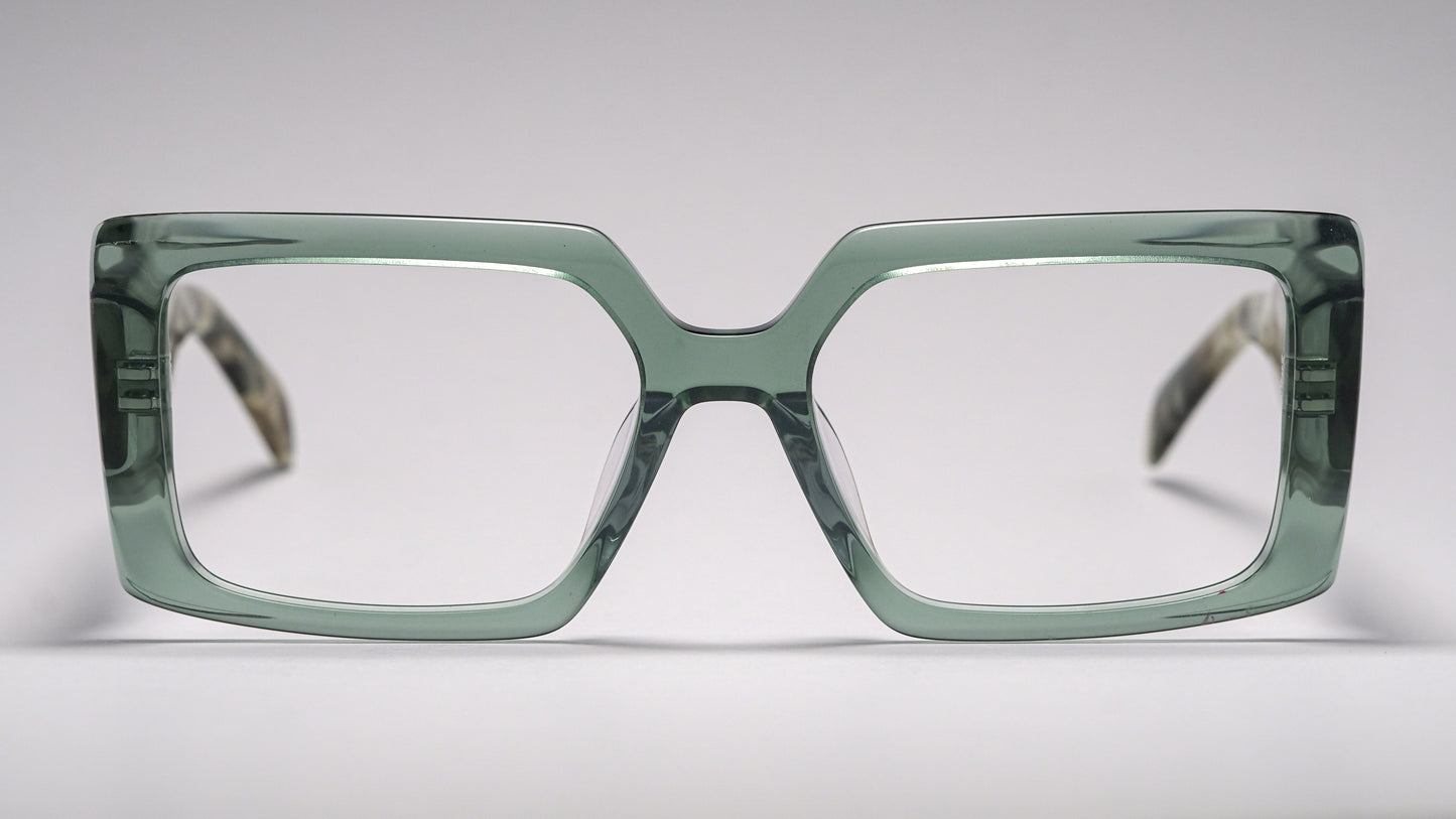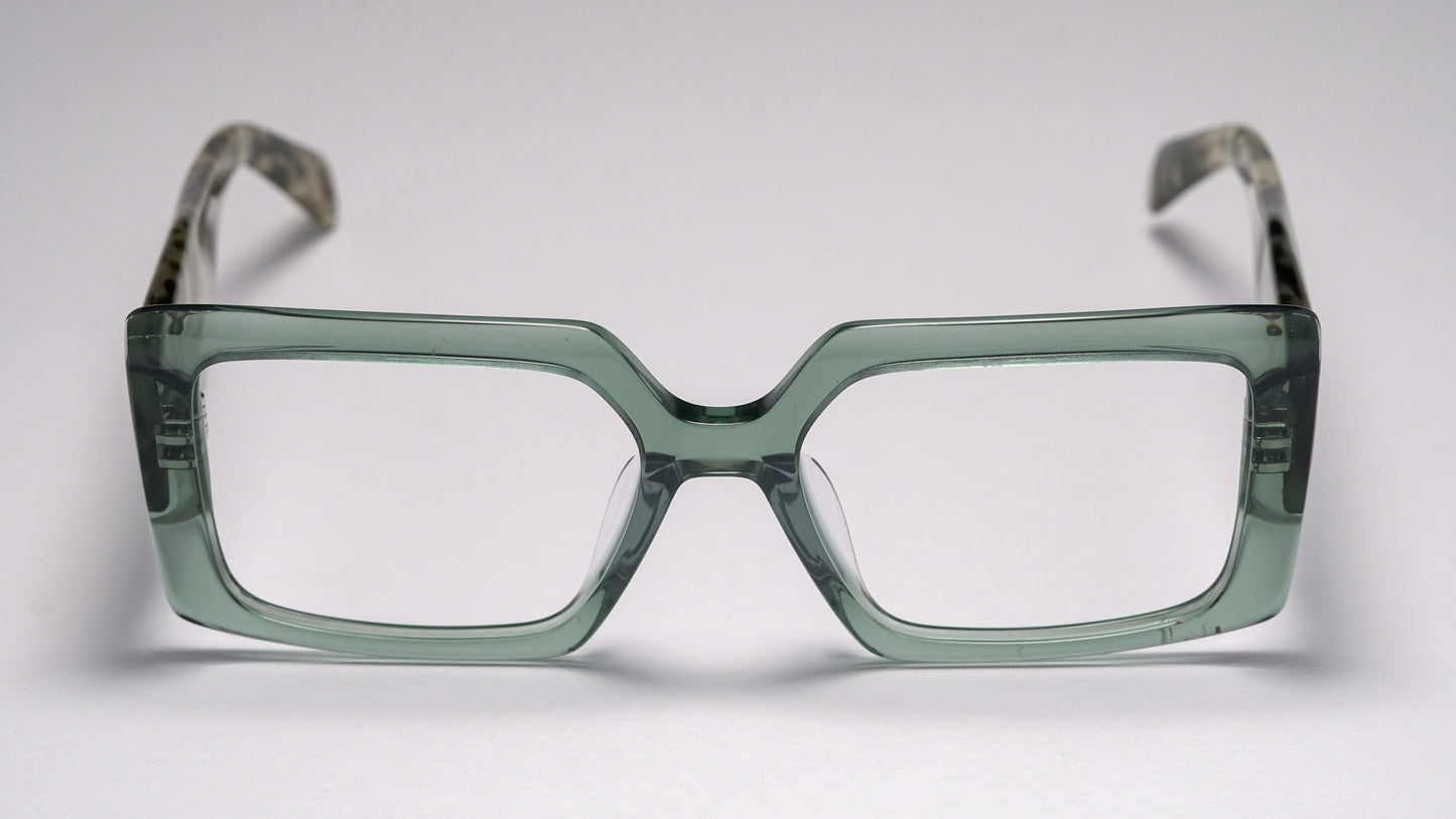 CARACTERISTICAS: Aro con frente y patillas de pasta gruesa . Frente color verde, brillante estilo rectangular. Patillas tortoise en café y beige.