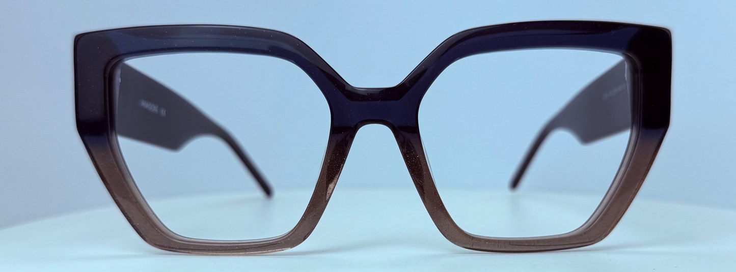 DESCRIPCION: Este aro es una pieza audaz y llamativa, ideal para quienes buscan un accesorio que combine atrevimiento y sofisticación. El frente en pasta bold con colores azul y café desvanecido translúcido con escarcha le da un look único y brillante, perfecto para destacar en cualquier ocasión. Su estilo cat eye cuadrado favorece especialmente a rostros redondos y ovalados, ya que estiliza y define las facciones, añadiendo un toque de feminidad y glamour. Los tonos translúcidos con escarcha son versátiles, realzando la luminosidad de las pieles claras, complementando la calidez de las medianas y añadiendo un contraste moderno a las oscuras. Una opción ideal para quienes buscan un aro que combine tendencia y elegancia con un toque de brillo.