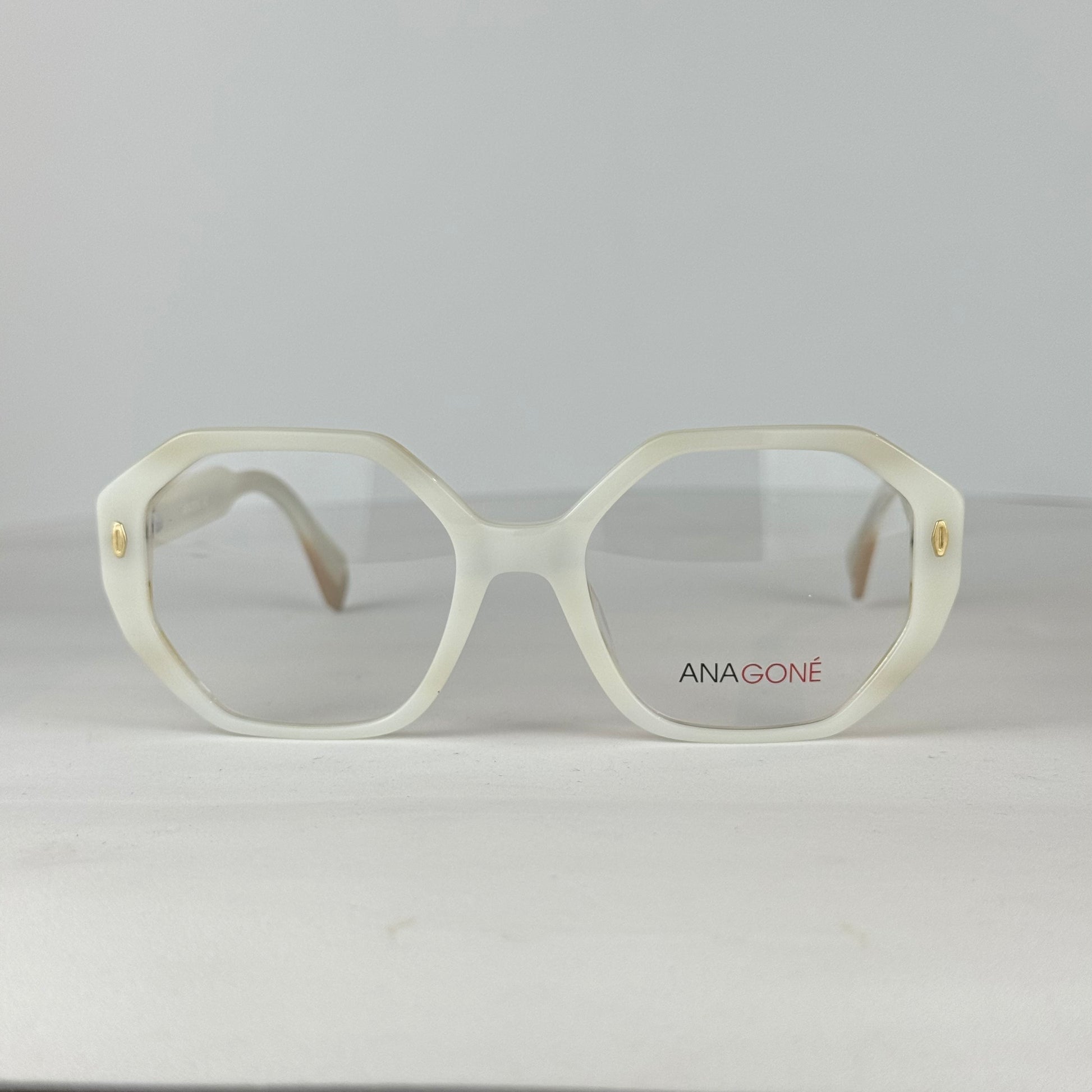 DESCRIPCIÓN: Su diseño hexagonal de ángulos suavizados combina estructura y suavidad, ideal para rostros redondos u ovalados que buscan definición sutil. El tono blanco marfil brillante realza todos los tonos de piel aportando luminosidad y contraste elegante. Perfecto para estilos modernos, sofisticados o minimalistas con personalidad.