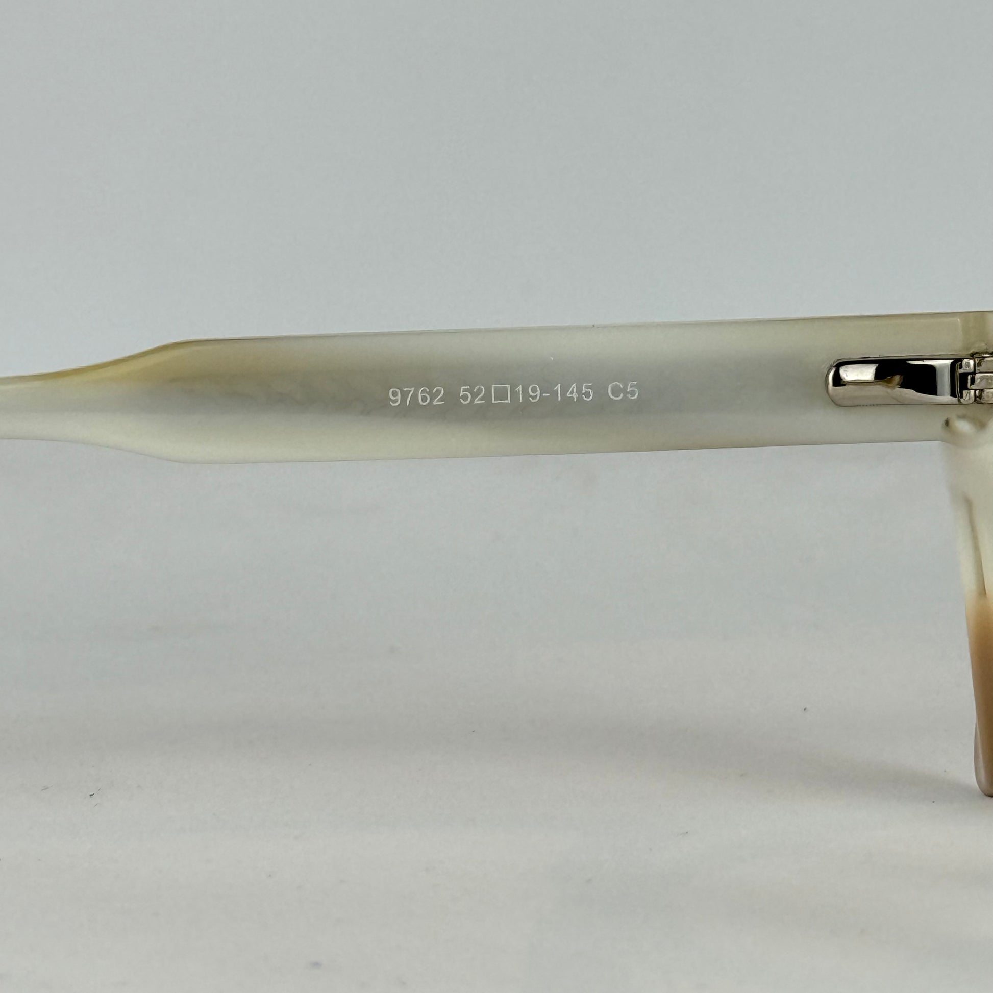 CARACTERÍSTICAS: Aro con frente y patillas de pasta, color blanco marfil, brillante, diseño hexagonal de ángulos suavizados.