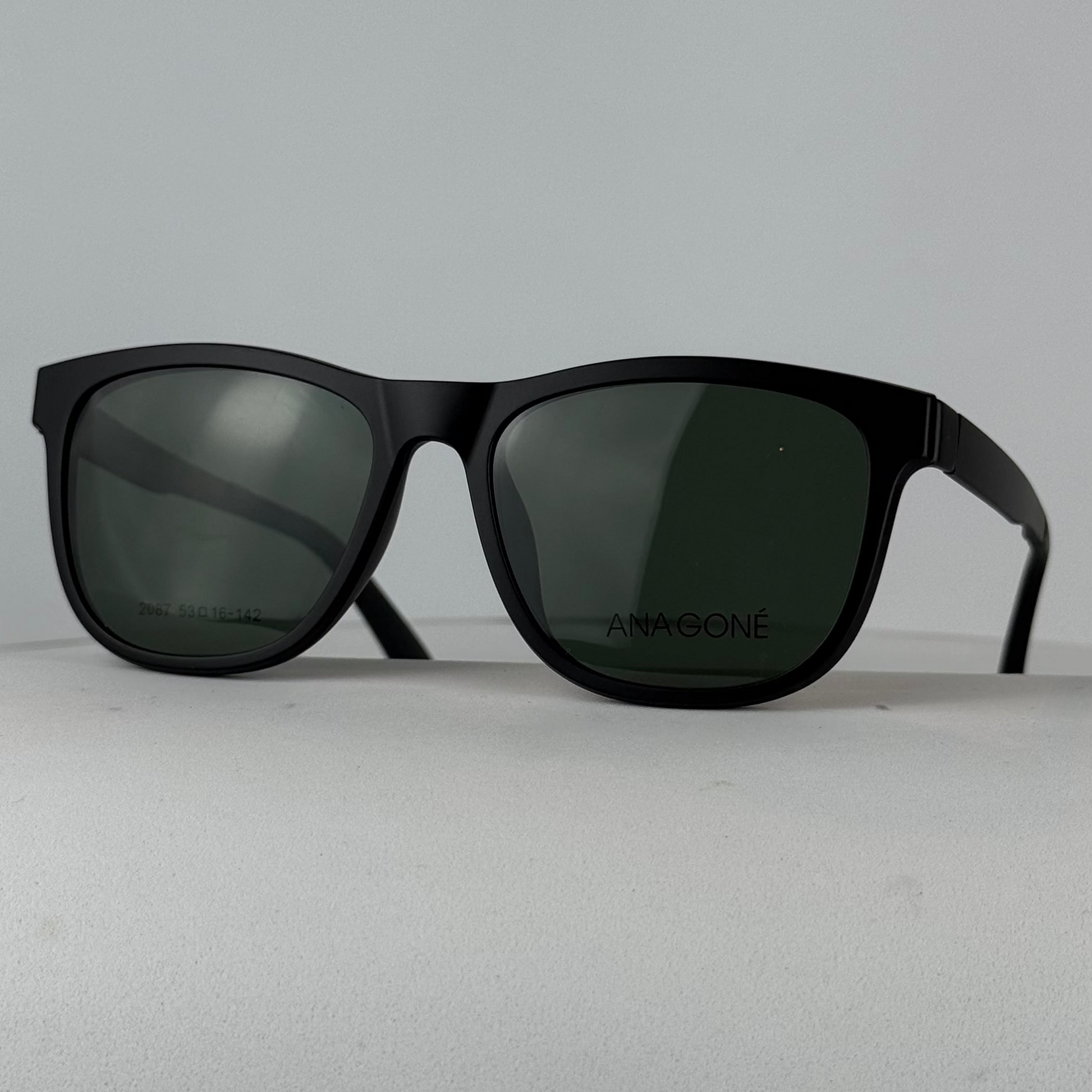 DESCRIPCIÓN: Diseño cuadrado suavizado que favorece rostros redondos u ovalados, aportando estructura sin endurecer. El negro sólido mate ofrece un look moderno y sobrio. El clip polarizado verde G15 suma protección y un acabado clásico y funcional.