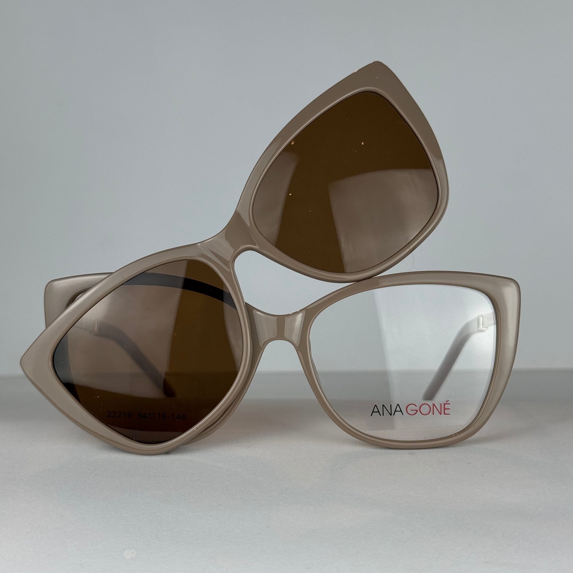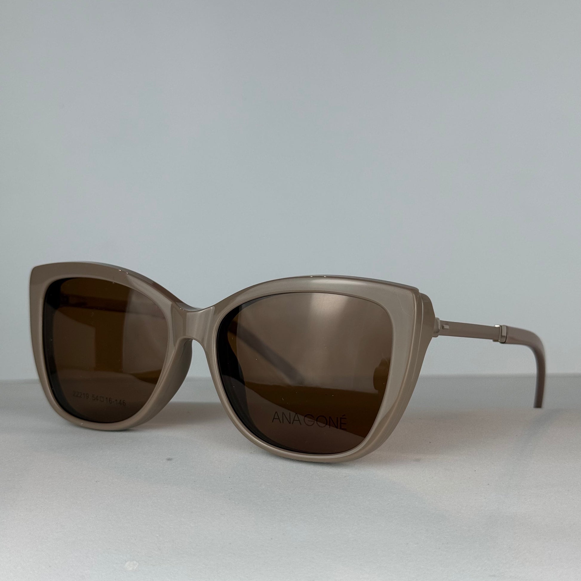 DESCRIPCIÓN:Cat-eye rectangular suavizado que estiliza rostros ovalados o redondos. El tono nude/rosa brillante con patillas doradas aporta suavidad y elegancia. El clip polarizado café mantiene la armonía y suma funcionalidad para el día a día.