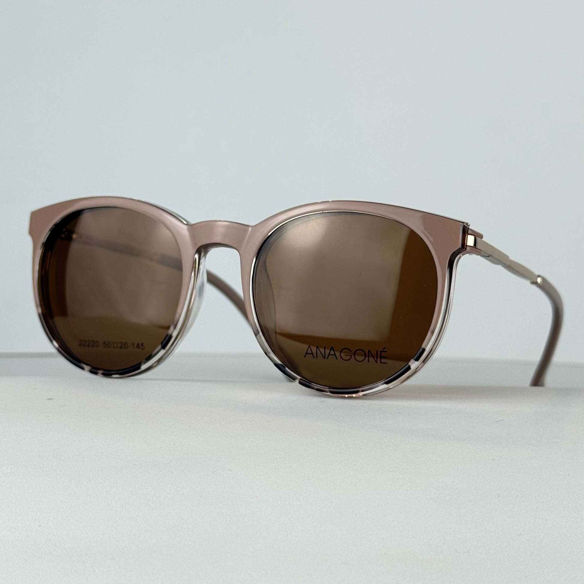 DESCRIPCIÓN:Diseño redondo que favorece rostros cuadrados o angulosos, suavizando rasgos y aportando armonía. El frente rosado sólido degradado a tortoise negro/transparente con patillas doradas suma calidez y luminosidad. El clip polarizado café mantiene la armonía y funcionalidad para uso diario.
