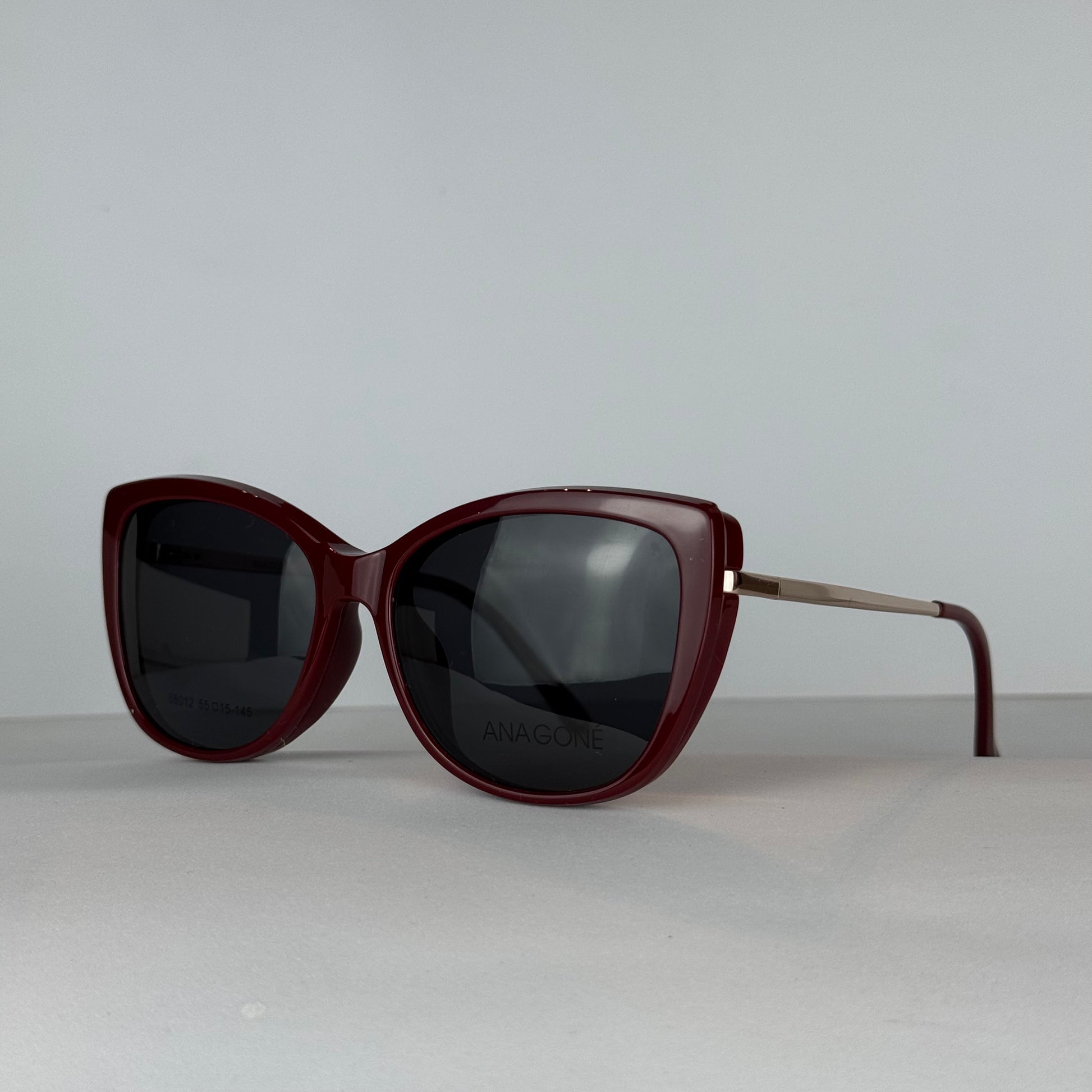 DESCRIPCIÓN: Su diseño cat-eye redondeado realza la mirada y aporta suavidad, ideal para rostros ovalados o corazón. El frente en tono vino brillante con patillas doradas crea un contraste elegante y cálido. El clip polarizado en color negro añade un toque contemporáneo, combinando estilo y funcionalidad con distinción.