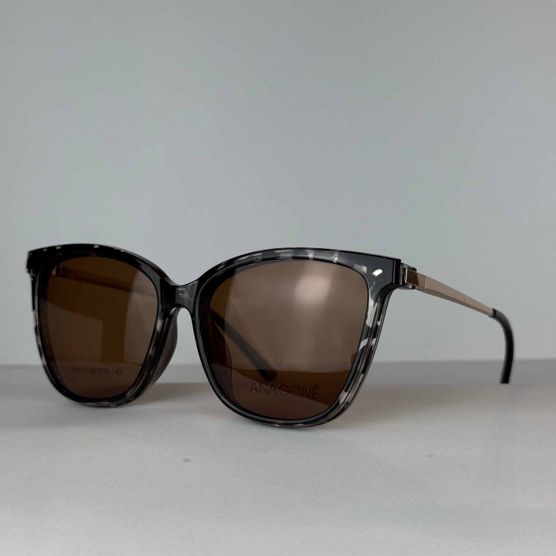DESCRIPCIÓN:Diseño cuadrado que favorece rostros redondos u ovalados aportando estructura y equilibrio. El tortoise negro/transparente con patillas doradas suma elegancia moderna. El clip polarizado café mantiene armonía y funcionalidad para uso diario.