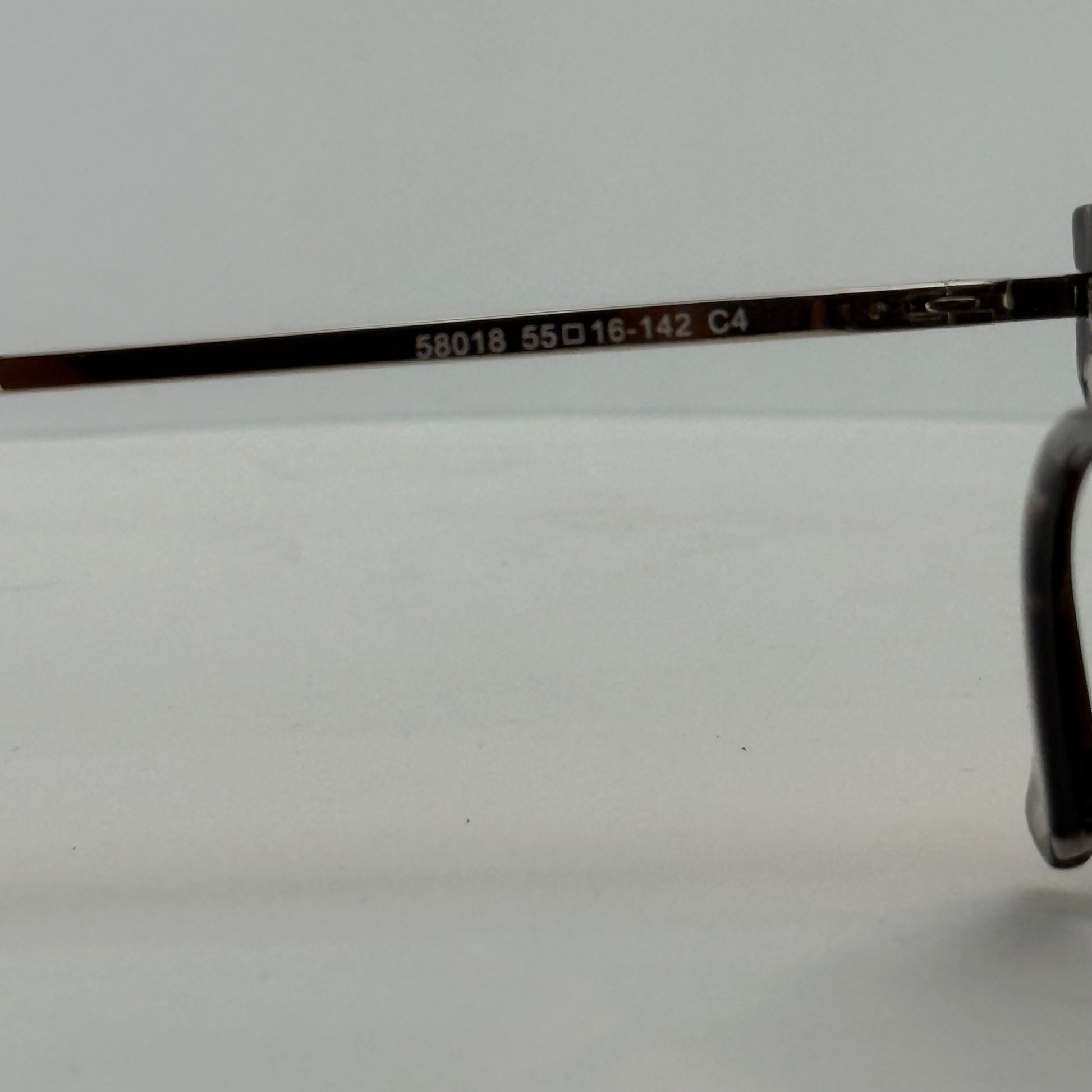 CARACTERÍSTICAS:Aro frente en pasta, color tortoise café oscuro/ transparente, brillante, diseño cat eye rectangular. Patillas en metal dorado. Clip es igual en cuanto a acabados, lente polarizado en color café.