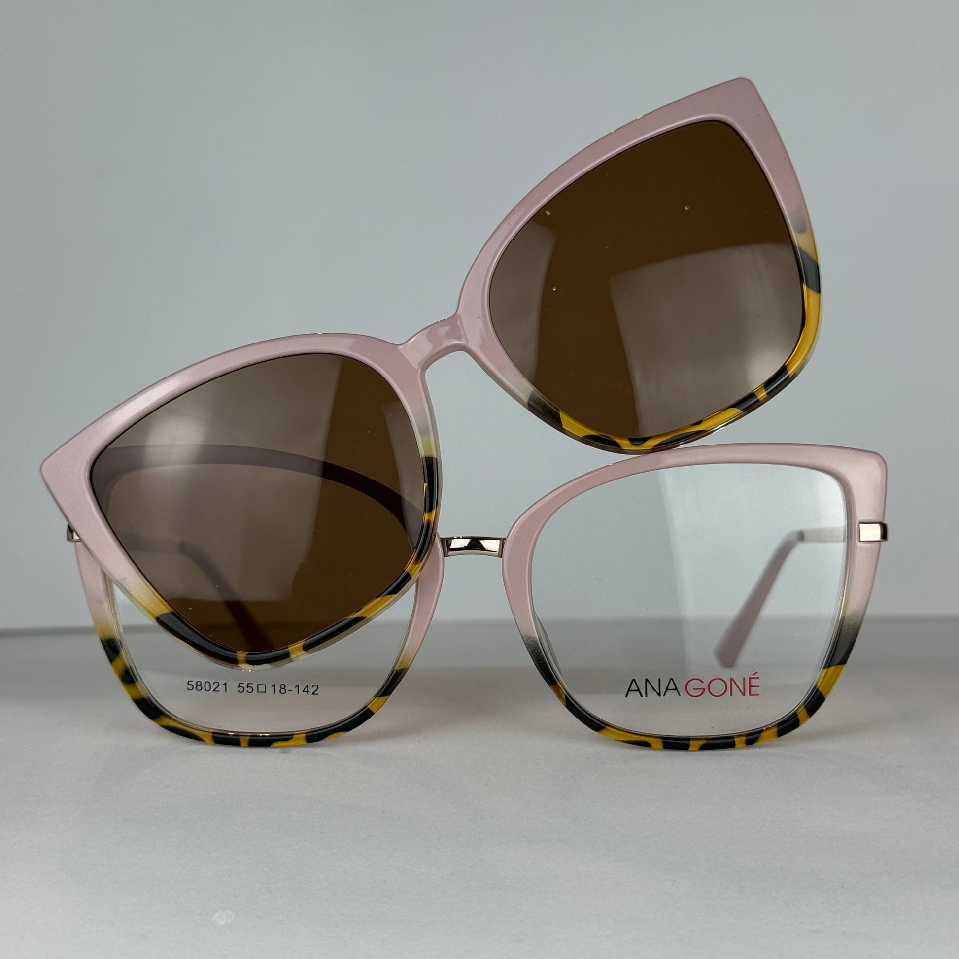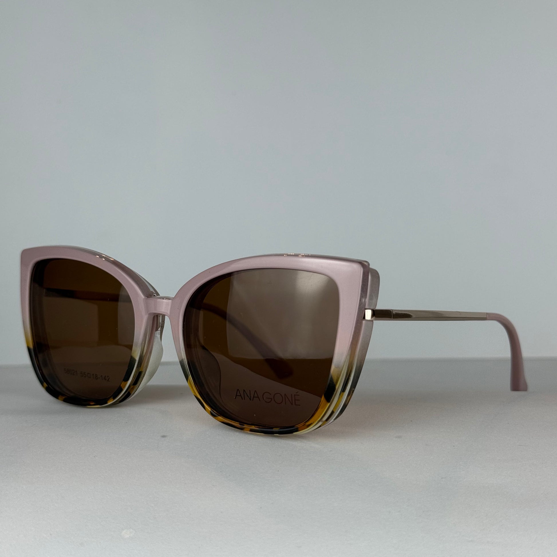 DESCRIPCIÓN: Su diseño cat-eye rectangular aporta definición y dinamismo, ideal para rostros ovalados o redondos que buscan estilizar. El frente en morado sólido degradado a tortoise marrón con patillas doradas combina fuerza, calidez y sofisticación. El clip polarizado en color café mantiene la armonía visual, logrando un look moderno y versátil para el día a día.