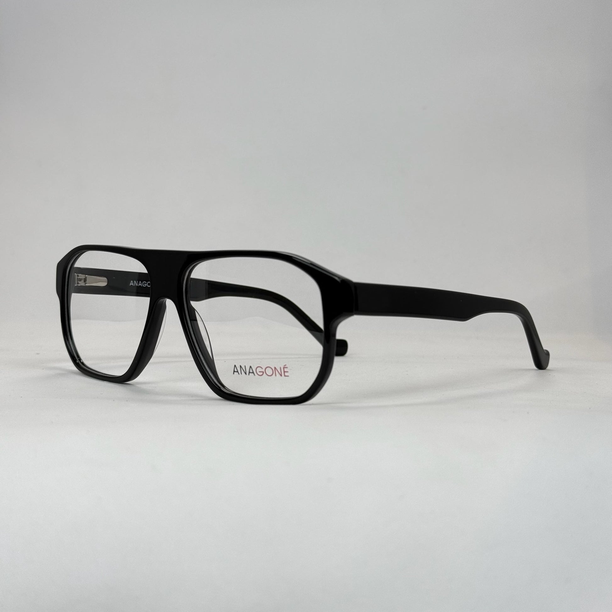 CARACTERISTICAS: Aro con frente y patillas en pasta color negro, brillante, estilo aviador con ángulos marcados .